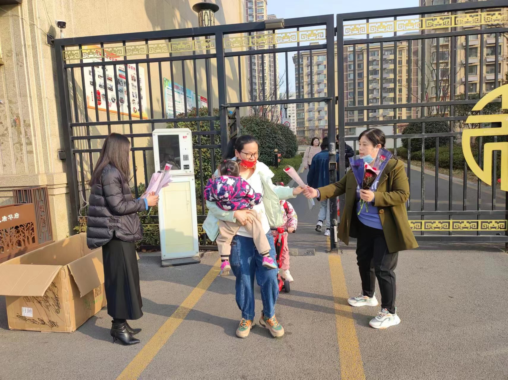 春意盎然,草長(zhǎng)鶯飛。同樣美好的場(chǎng)景,在裕升大唐華府同步上演,營(yíng)銷中心與物業(yè)中心的小姐姐們化身鮮花使者,將數(shù)百枝康乃馨送到業(yè)主手中。