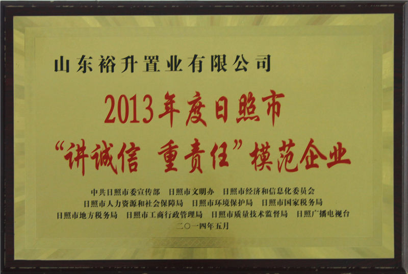 2013年度日照市講誠信 重責(zé)任模范企業(yè)