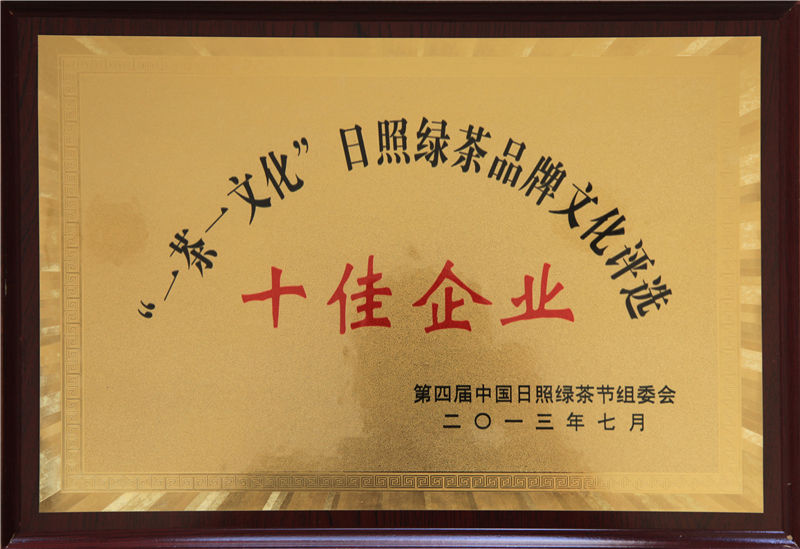 一茶一文化日照綠茶品牌文化評(píng)選十佳企業(yè)