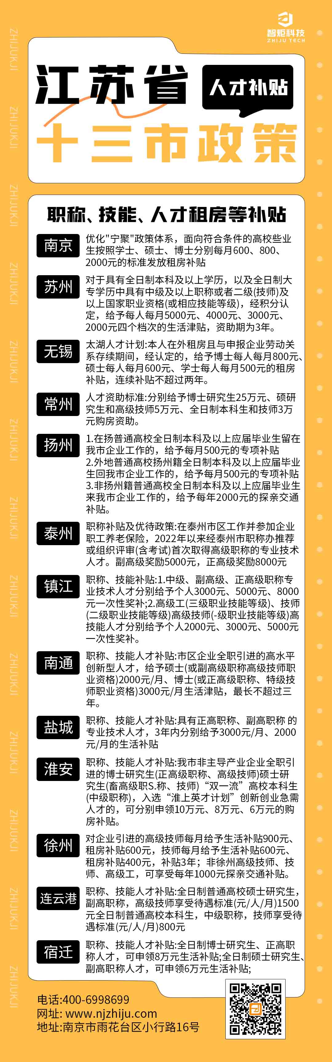 福利攻略 | 江蘇省十三市區(qū)人才補(bǔ)貼政策!