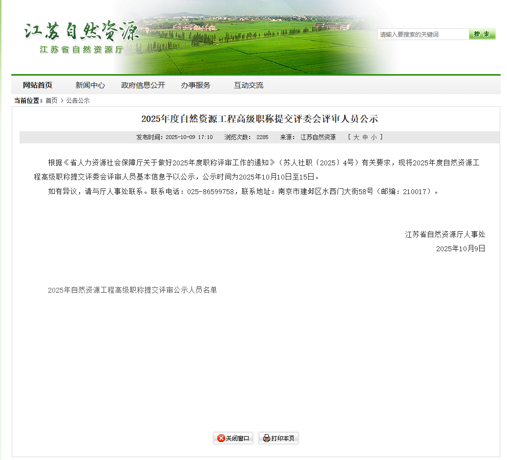 2025年度自然資源工程高級(jí)職稱提交評(píng)委會(huì)評(píng)審人員公示(評(píng)前公示)