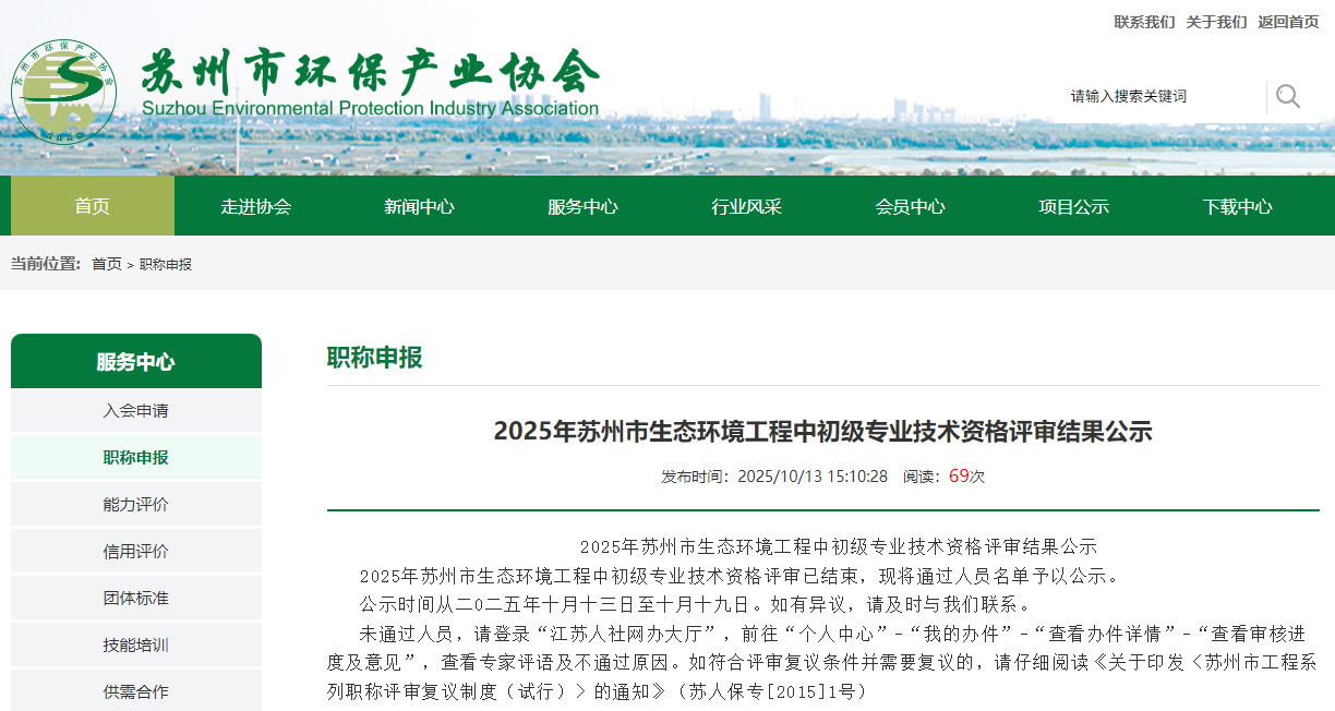2025年蘇州市生態(tài)環(huán)境工程中初級(jí)專業(yè)技術(shù)資格評(píng)審結(jié)果公示