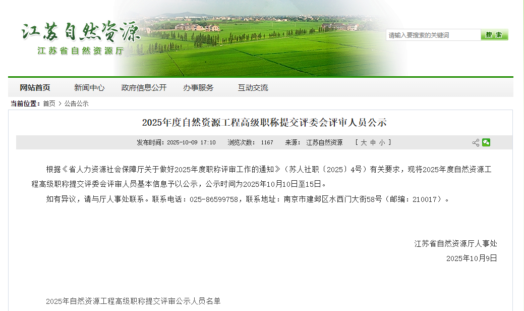 2025年自然資源工程高級(jí)職稱提交評(píng)審公示人員名單 附件下載