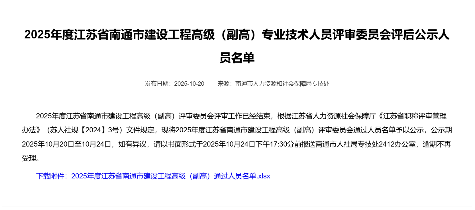 | 2025年度江蘇省南通市建設(shè)工程高級(副高)通過人員名單 |