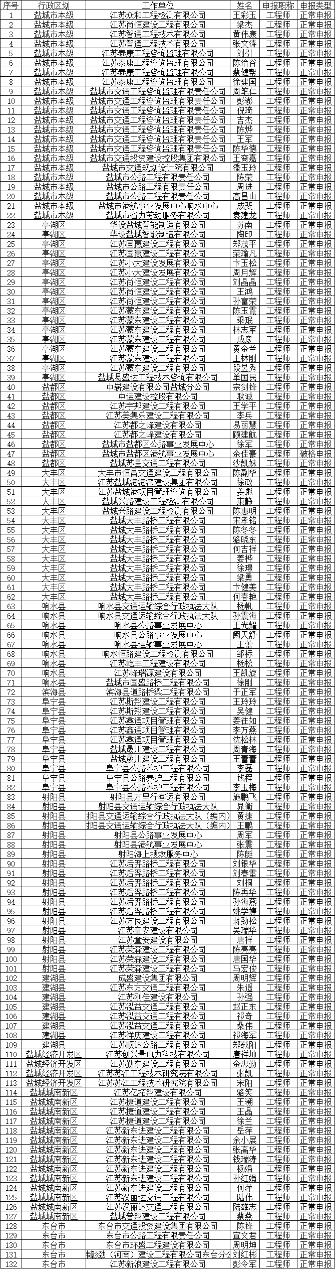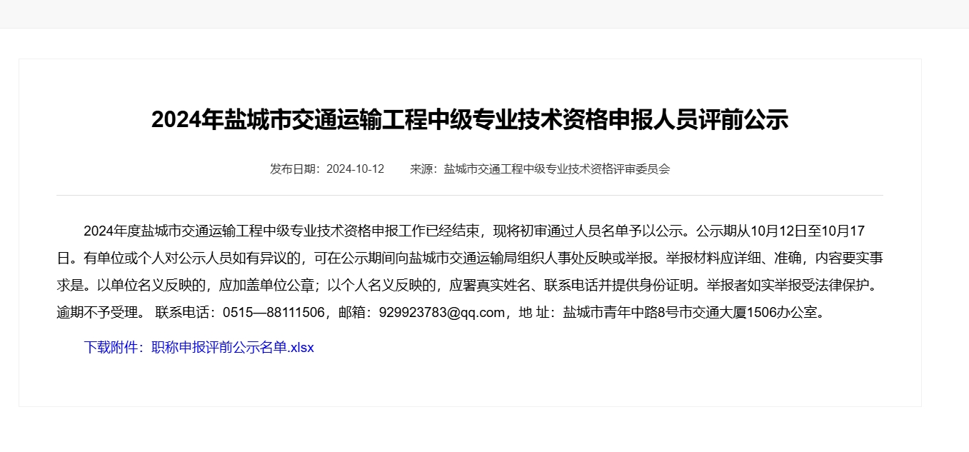 評前公示 | 2024年鹽城市交通運輸工程中級專業(yè)技術(shù)資格申報人員評前公示