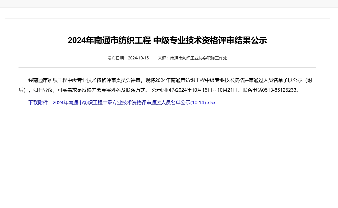 評審結(jié)果 | 2024年南通市紡織工程 中級專業(yè)技術資格評審結(jié)果公示