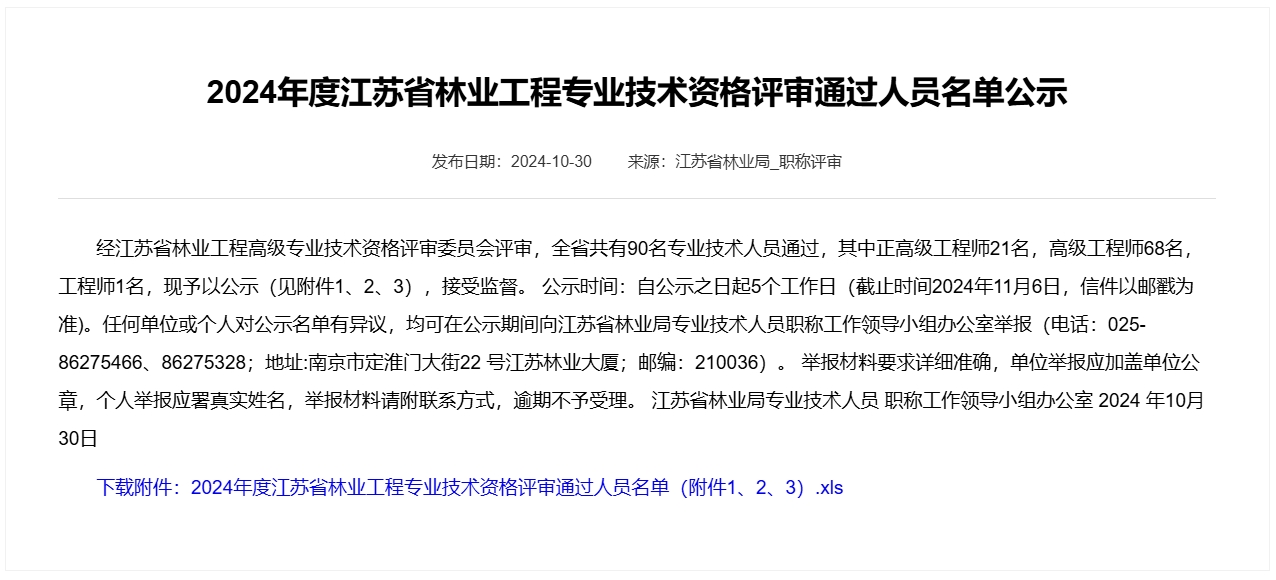 2024年度江蘇省林業(yè)工程專業(yè)技術資格評審通過人員名單公示