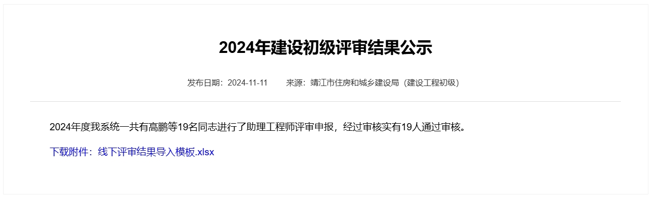 2024年靖江市建設(shè)初級評審結(jié)果公示